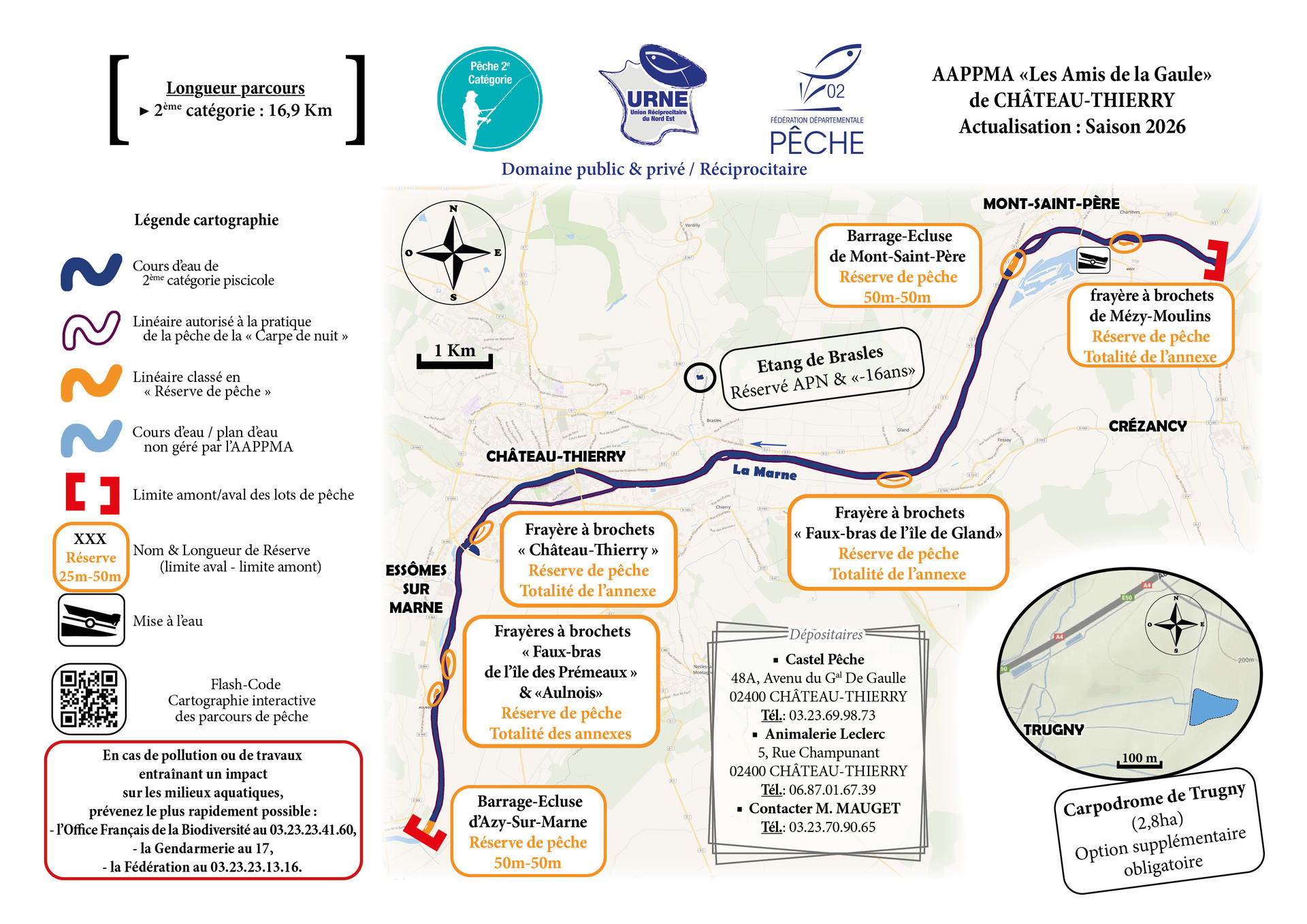 ∎ Plan d’eau : Etang réciprocitaire de Brasles (Réservé "-16 ans" & "APN")