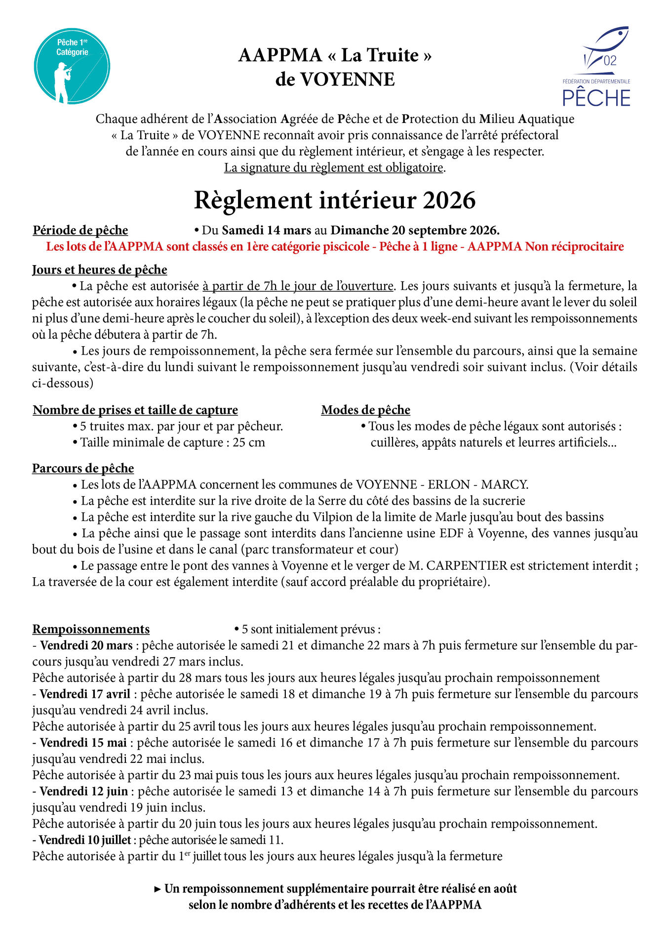 • AAPPMA non réciprocitaire